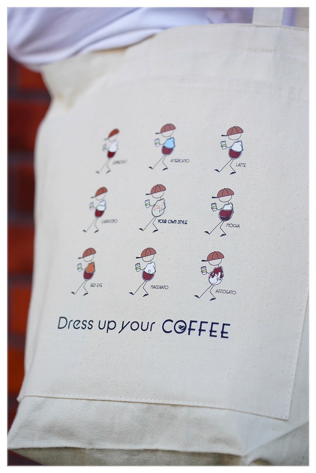エスプレッソ系ドリンクメニューをかわいいイラストにしています。表にはスマートフォンや小物が入るポケット付き。